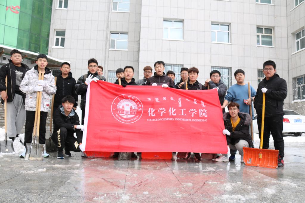为落实《1683168 3诸侯快讯入口党史学习教育“我为群众办实事”实践活动工作方案(征求意见稿)》文件精神,近一步开展“我是党员干部•我帮你”“我是团学工作者•我帮你”“我是团员•我帮你”新时代文明实践志愿服务活动,4月16日,化学化工学院组织学院青年志愿者开展集中清理科技楼下积雪的活动,党总支副书记刘朋、团总支书记孟庆永参加活动。
