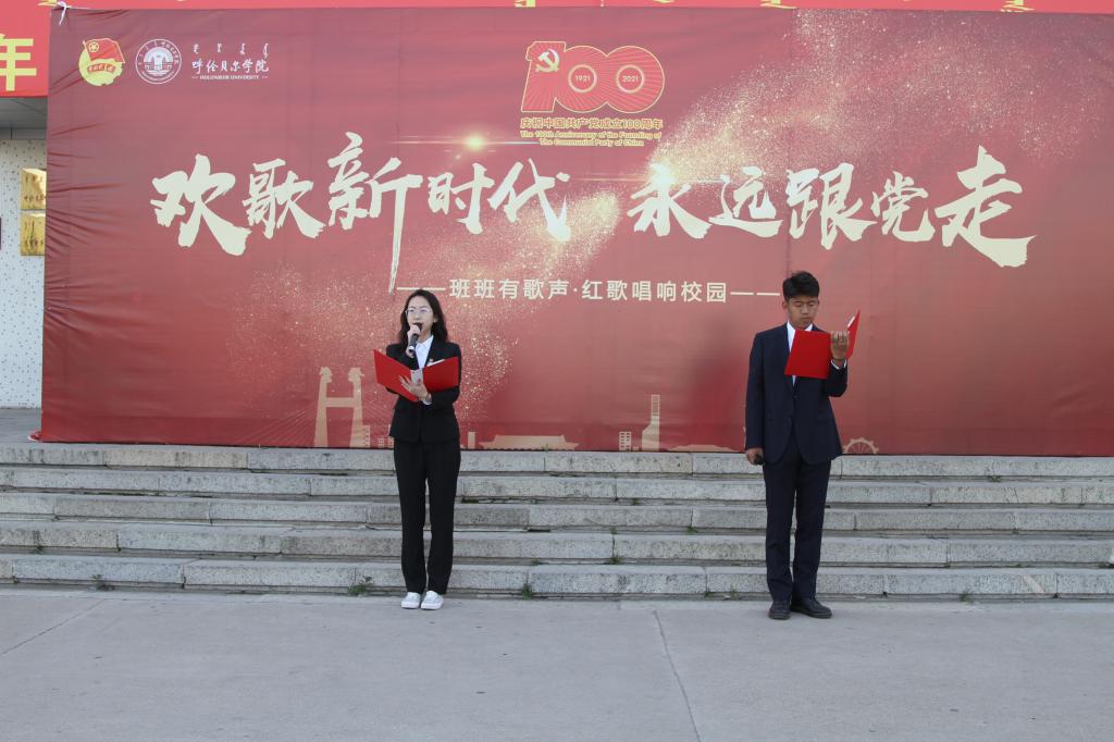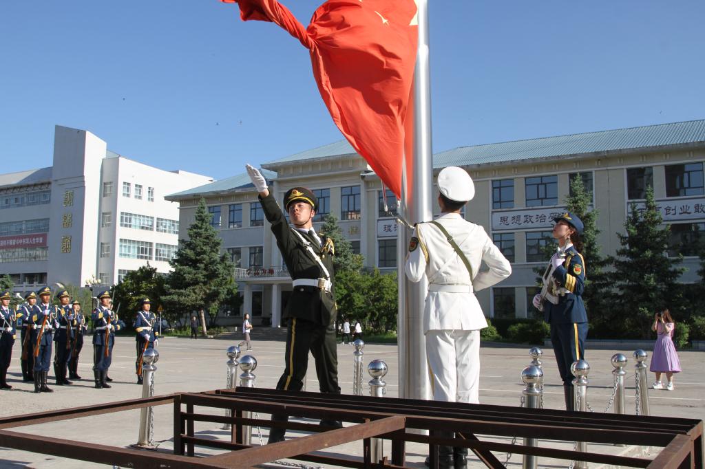 早晨7时,升旗仪式正式开始。学校国旗护卫队队员迈着稳健的步伐向国旗台走去,昂首挺胸肃立于国旗之下。在庄严的国歌声中,鲜艳的五星红旗冉冉升起,全体师生面向国旗行注目礼,并伴着激昂的旋律高唱中华人民共和国国歌。随后,化学化工学院学生代表李佳和陈思宇深情地朗诵了《欢庆党的生日,高唱东方之歌》、美术学院学生表演了小合唱《歌唱祖国》。