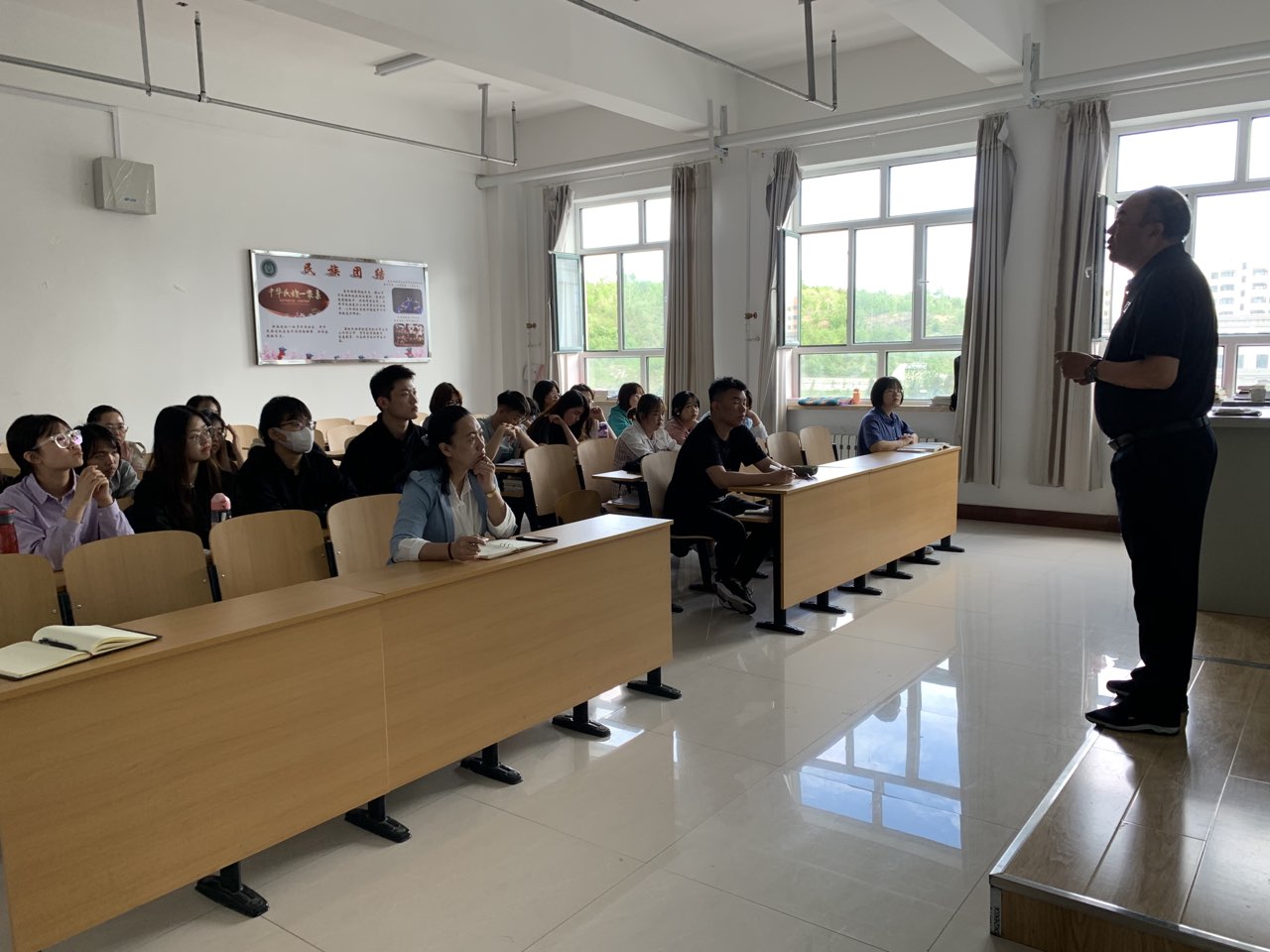 6月9日下午,法学院在崇文楼B425邀请自治区呼伦贝尔市党委党史学习教育宣讲团成员、历史文化学院副教授黄福令为法学院宣讲团学生开展题为《新中国成立前中国共产党颁布过的土地法》专题讲座。同时邀请校党委宣传部理论教育科科长白玫老师为宣讲团成员进行宣讲指导。法学院党总支副书记白杰主持会议。法学院宣讲团全体成员参加。