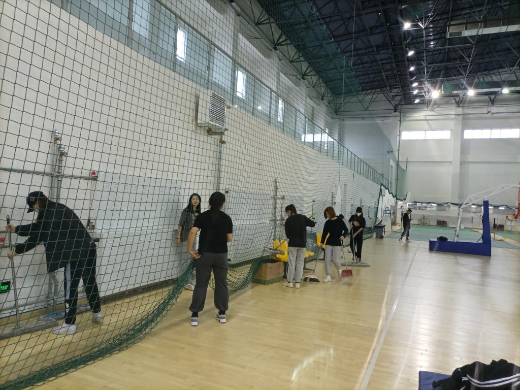 在室外劳动中,师生党员先后顶着雨在足球馆外清理杂草和建筑垃圾,平整土地。在室内劳动中,大家打扫羽毛球、篮球场地和办公区卫生。党员们分工明确,忙而不乱,干劲十足,不怕脏、不怕累,在大家的共同努力下,场馆内外收拾的干净整洁。当室内外场馆整洁的环境展现在大家眼前时,大家倍感欣慰和“爱与奉献”的幸福。