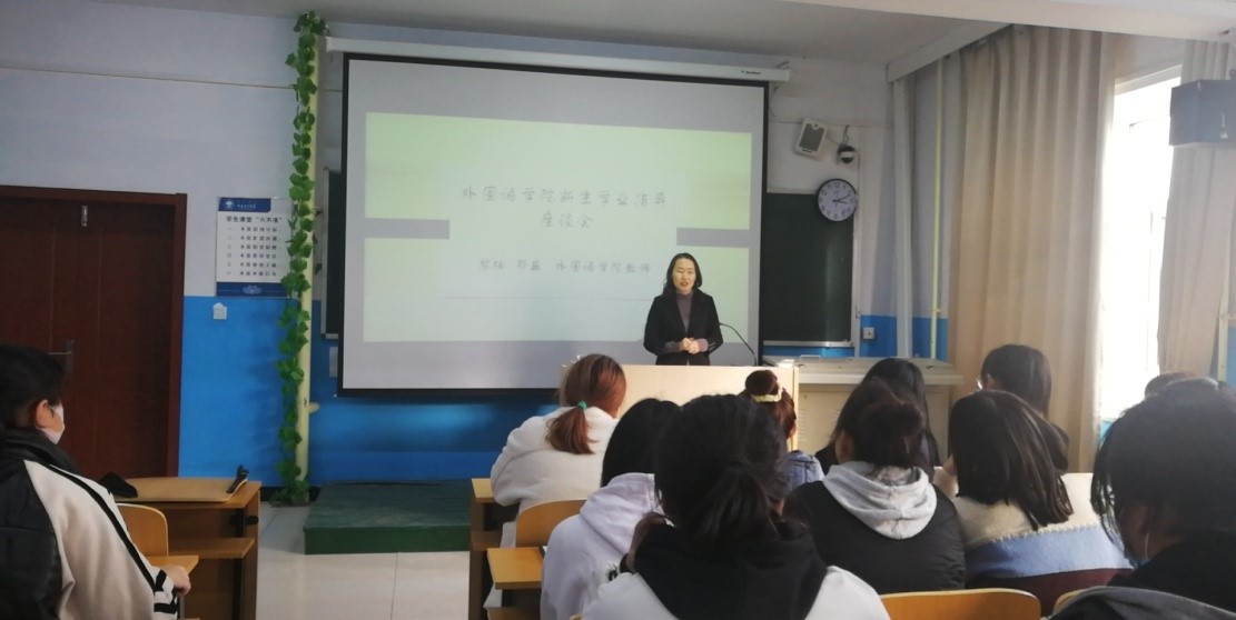 会上,外国语学院教师黎楠、鄂巍为全体2021级新生做了针对师范专业认证下英语专业的系统性学习和学业规划的学习经验交流,要求新生在基础阶段的学习中做到勤学苦练英语听、说、读、写基本功,为高年级阶段的英语语言学、英美文学、英汉互译、中学英语课程教学等专业方向课程的学习打下坚实的基础,并期望新生能够从实际出发,尽快确定符合个人专业发展的学业规划目标,并为之努力奋斗。