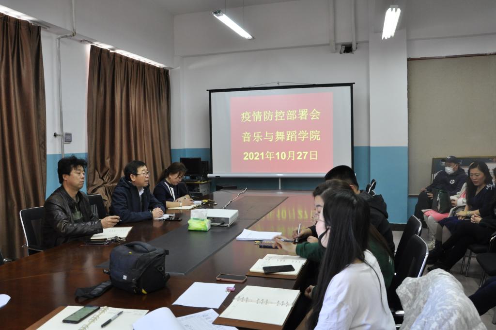 10月27日下午,音乐与舞蹈学院组织全体教职工在艺术楼606会议室召开疫情防控工作部署会,贯彻落实学校疫情防控会议精神,并对音乐与舞蹈学院疫情防控工作进行安排和部署。