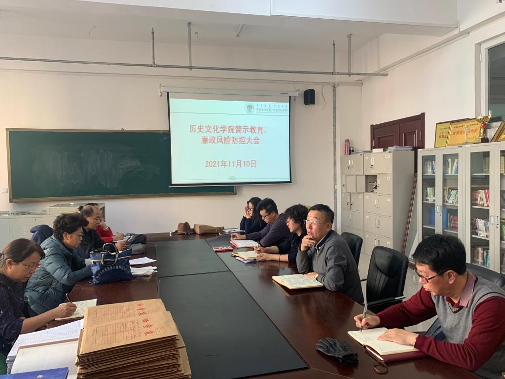 为深化党史学习教育,提升廉政风险防控能力,推进全面从严治党、师德师风建设向纵深发展,11月10日,历史文化学院召开廉政风险防控、警示教育大会,学院全体教师参加。