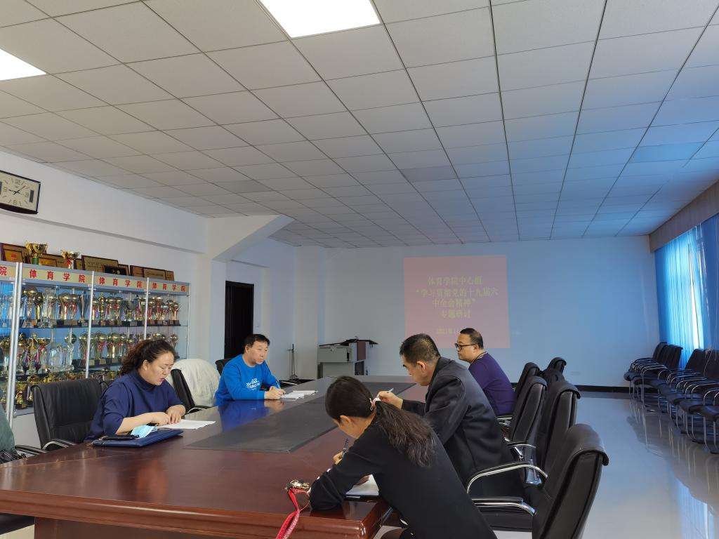 11月26日上午,体育学院党总支理论学习中心组在田径场二楼会议室开展“学习贯彻党的十九届六中全会精神”专题研讨,会议由党总支书记李伟艳主持。
