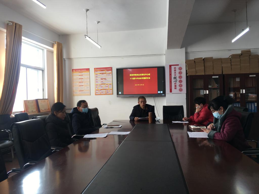 12月1日上午,教育学院党总支理论中心组在艺术楼210会议室召开“学习贯彻党的十九届六中全会精神专题研讨会”。会议由教育学院党总支书记姜明红主持,党总支理论中心组成员参加了会议。