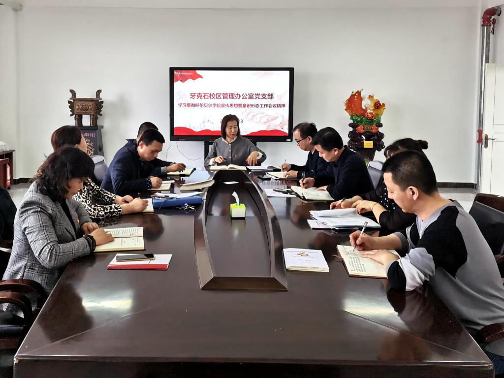 3月23日下午,牙克石校区管理办公室党支部在五楼会议室召开意识形态工作专题会议,会议由牙克石校区管理办公室党支部书记、主任刘素华主持。