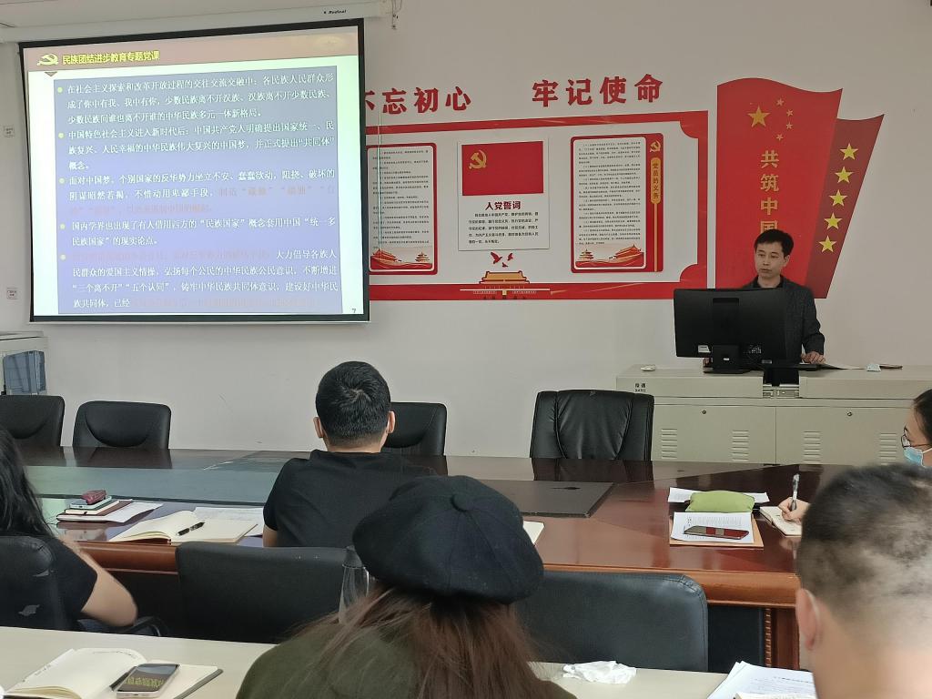 为深入学习贯彻习近平总书记关于民族工作的重要论述,更好地践行守望相助理念,4月27日下午,传媒学院党总支举办了民族团结进步教育专题党课活动。此次专题党课题目为“巩固中华民族共同体思想基础铸牢中华民族共同体意识”。传媒学院党总支书记核心讲授。