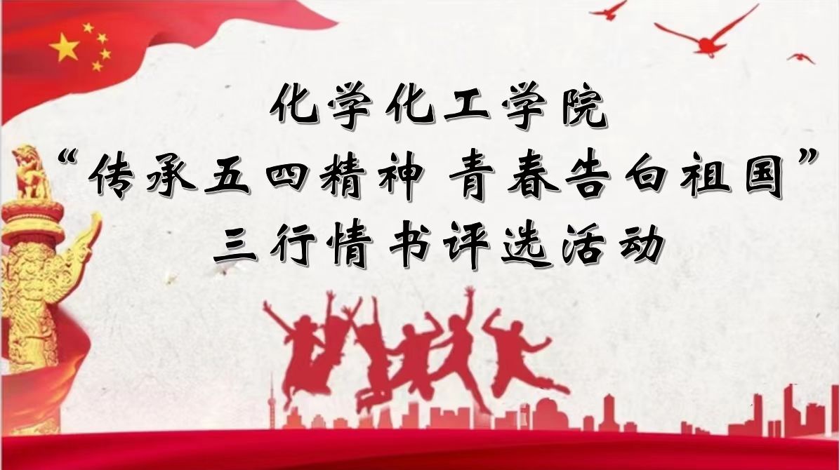 4月30日至5月14日,化学化工学院举办了“传承五四精神 青春告白祖国”三行情书大赛。本次活动旨在将青年学生对祖国的热爱之情融于凝练精简的文字中,将丝丝情谊扣入字里行间。