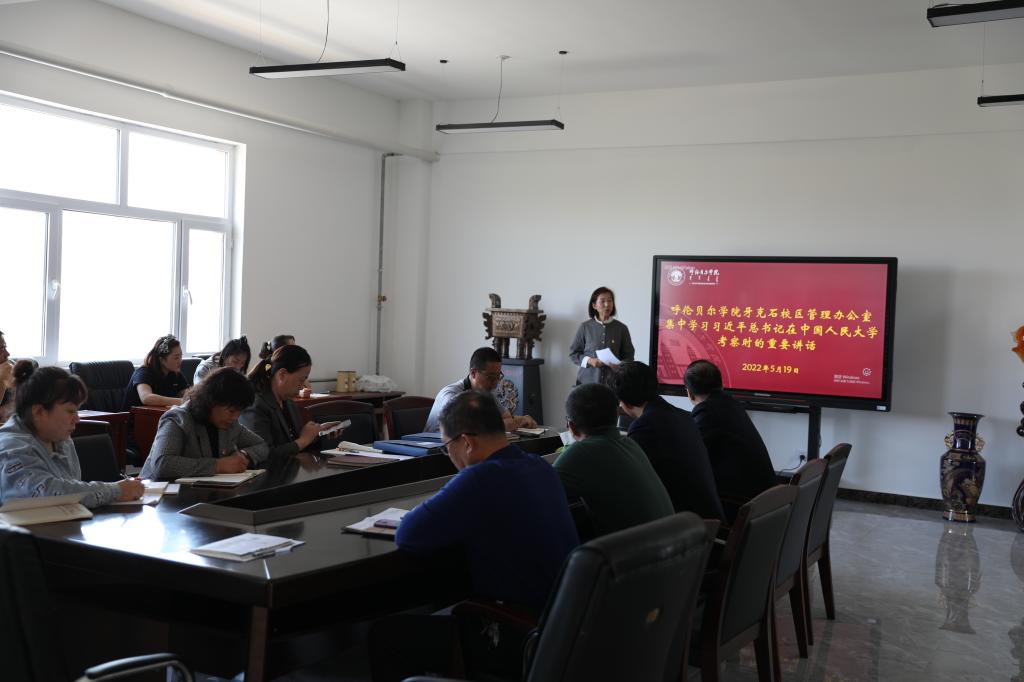 5月19日下午,牙克石校区管理办公室组织全体教职工集中学习习近平总书记在中国人民大学考察时的重要讲话,牙克石校区管理办公室主任刘素华主持学习会。