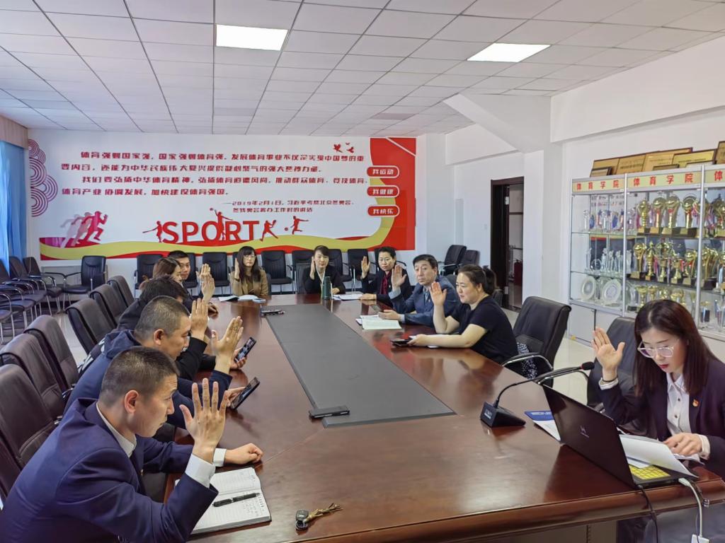 6月6日上午,体育学院学生党支部预备党员宣誓仪式在东山体育场2楼会议室举行,部分学生利用腾讯会议线上线下同步举行。体育学院党总支书记李伟艳、党总支副书记胡日查毕力格、学生支部全体党员及新发展的14名预备党员参加宣誓仪式。