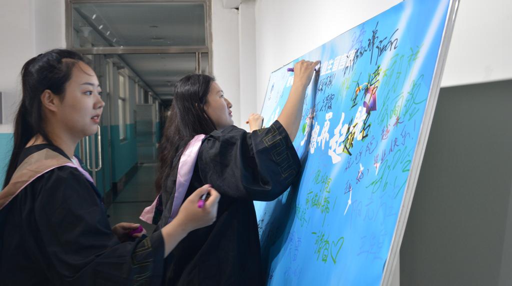 一句毕业寄语。教育学院为毕业生准备了留言墙,大家把大学四年的千言万语汇成毕业寄语留在这里。毕业生们即将踏上新征程,愿他们带着美好的校园回忆和老师同学们衷心的祝福勇往直前,在伟大的新时代书写人生崭新华章!