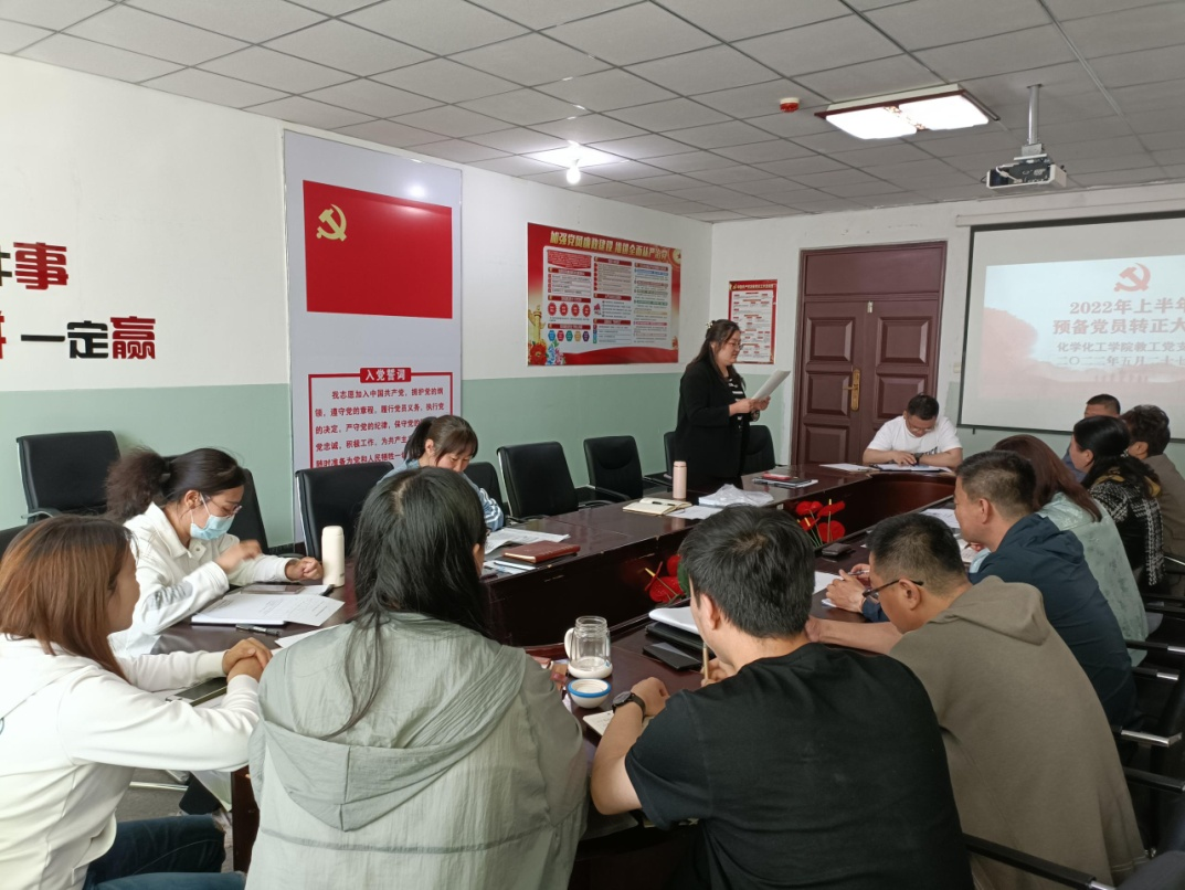 按照组织发展程序,化学化工学院教工党支部于6月8日在科技楼422会议室召开化学化工学院教工党支部2022年上半年预备党员转正大会。