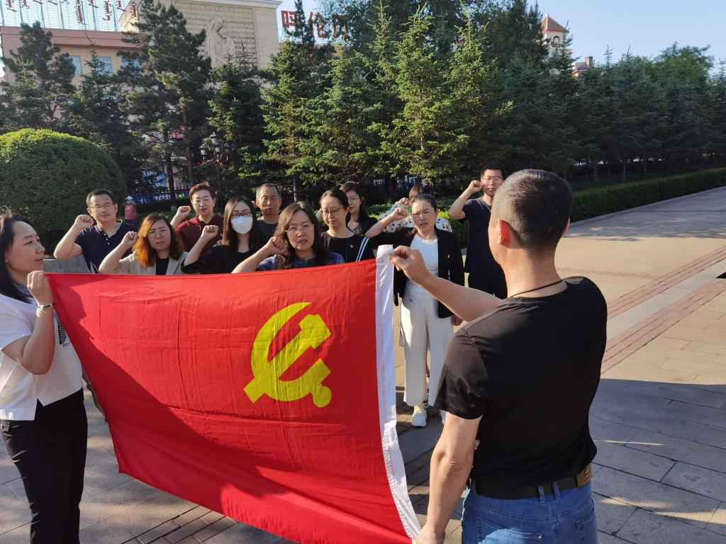 2022年7月1日6:30分,旅游与地理学院教工党支部在海拉尔烈士陵园举办“继承先烈遗志,共创和谐中国”主题党日活动。本次主题党日活动是旅地学院教工党支部“喜迎二十大,奋进新征程”系列活动的第二次活动,支部在海拉尔的13位教工党员全部参加。活动有四项议程组成:活动背景简介、重温入党誓词、专业主题讲解、向烈士敬献鲜花。