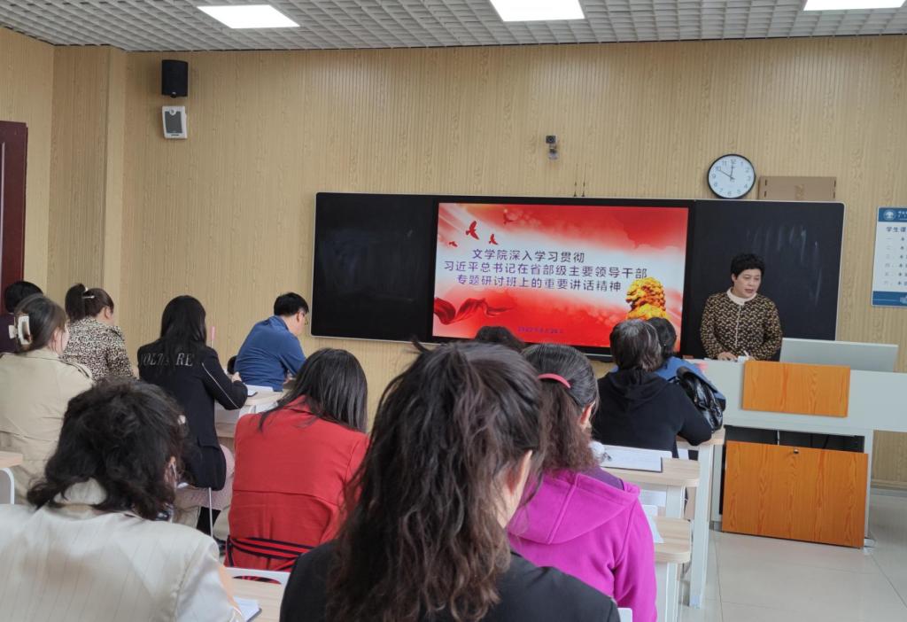 8月26日,文学院召开会议,学习贯彻习近平总书记在省部级主要领导干部“学习习近平总书记重要讲话精神,迎接党的二十大”专题研讨班上的重要讲话精神。党总支书记付宏主持会议,全体教职工参加学习。