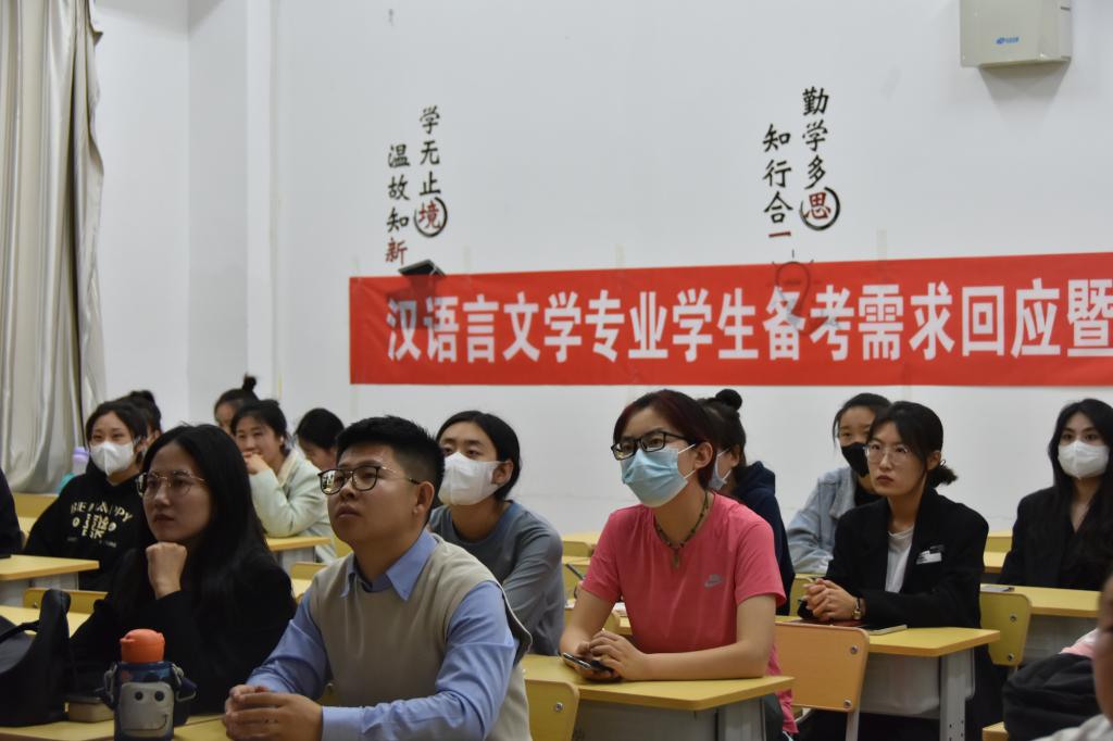 9月25日,文学院汉语言文学专业举办大四学生备考需求回应会。根据疫情防控需要,本次回应会采用线上线下结合形式进行,主会场设在崇文楼B602一流专业教室,部分学生和老师在云端参与。院长曹存有,副院长蔡文婷,实训中心主任曲建华和汉语言文学系主任陈艳华等参加了此次回应会。