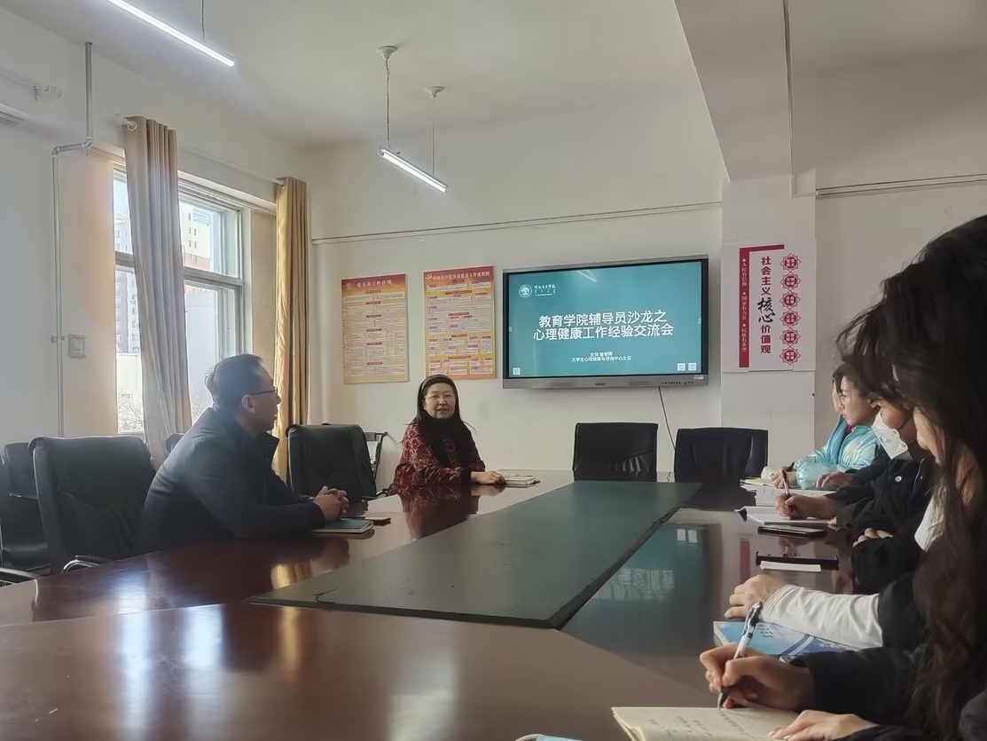 3月17日,教育学院在艺术楼210会议室开展辅导员沙龙之心理健康工作经验交流会,邀请校学生工作处大学生心理健康与咨询中心主任谢春辉指导交流。会议由教育学院副书记海江主持,全体辅导员参会。
