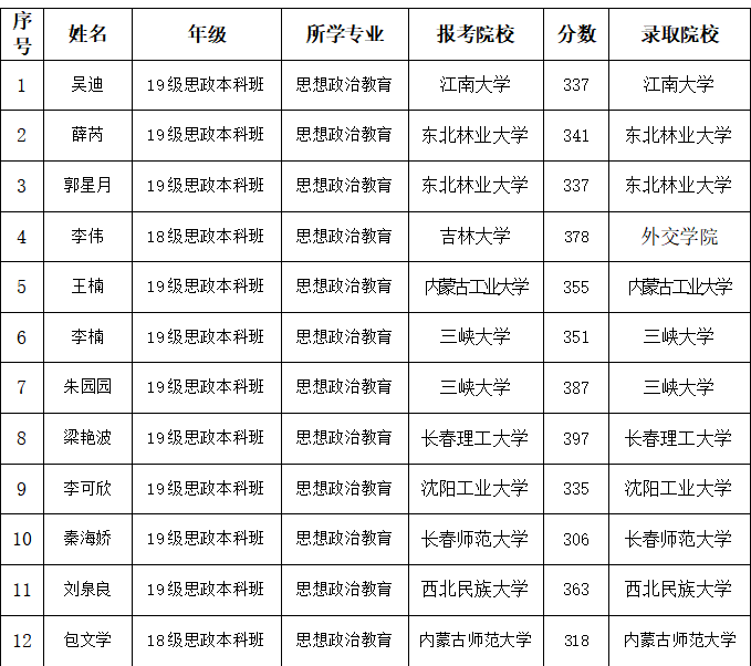 马克思主义学院2023年研究生考试获佳绩,学院报名参加硕士研究生考试33人,达国家线14人,目前12人已被录取。