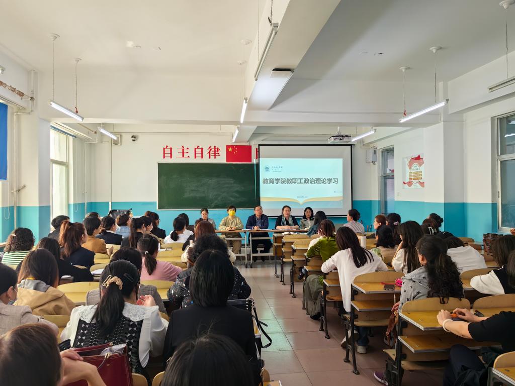 5月10日下午,教育学院在艺术楼405教室开展教职工政治理论学习会,会议由学院党总支书记海江主持,全体教职工参加。