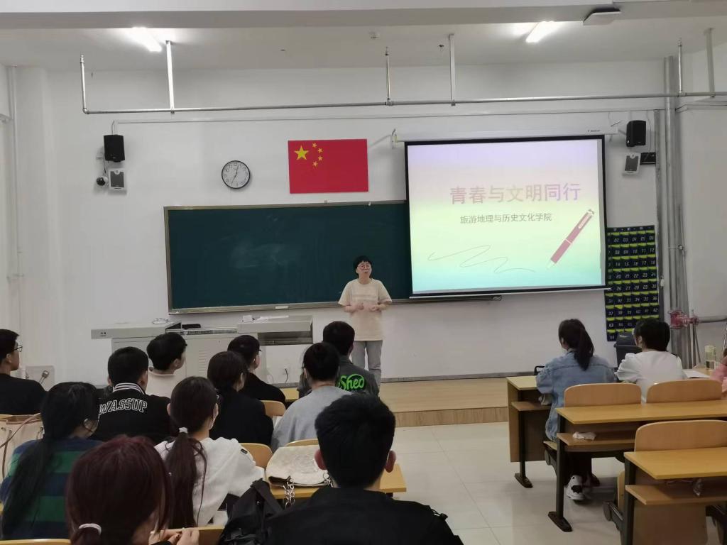 为了加强校风、班风、学风建设,5月8日至11日,旅游地理与历史文化学院27个班级陆续召开了以“文明修身”为主题的班会。