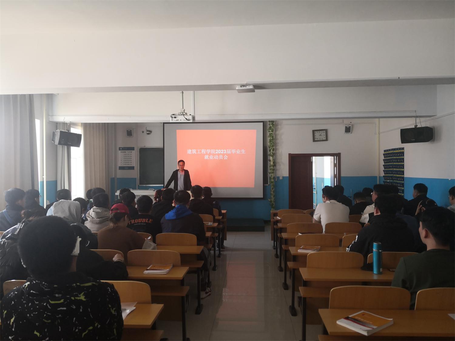 为进一步做好2023届毕业生就业工作,帮助同学们树立正确的就业择业观,5月15日下午,建筑工程学院在笃学楼501、601教室举办2023届毕业生就业再动员大会。学院党总支书记官志文、副书记哈达、团学办主任文权及2023届全体毕业生参加了此次会议。