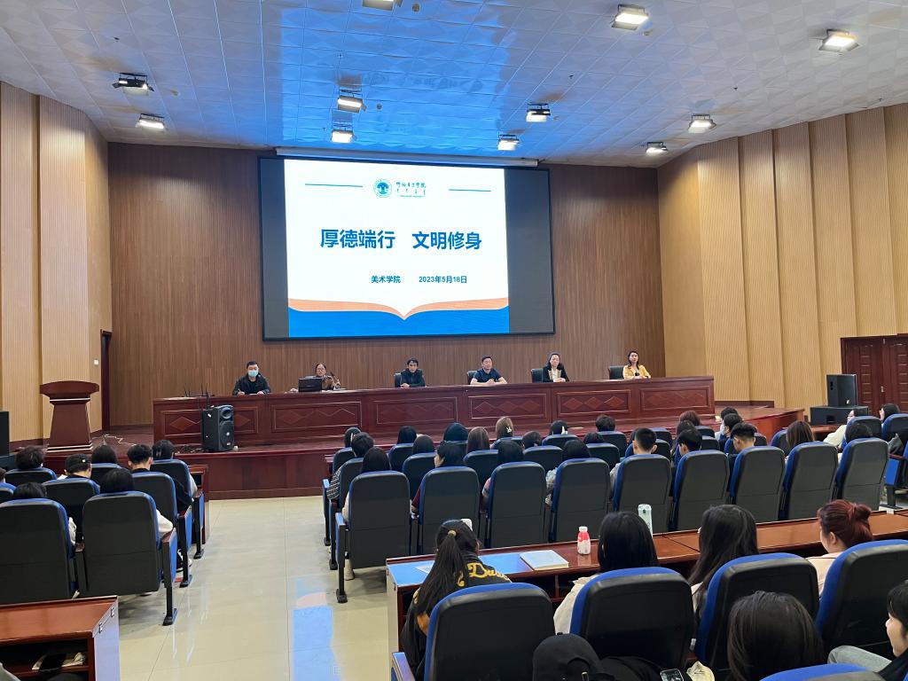 为进一步端正学风,凝聚力量,激励学生成长成才,5月18日,美术学院在图书馆四楼报告厅举行本学期“厚德端行文明修身”学风建设活动启动仪式。党总支书记巴达日呼、副书记张巍巍、副院长孙茂新出席会议,会议由团学办主任肖慧英主持,全体学生参会。