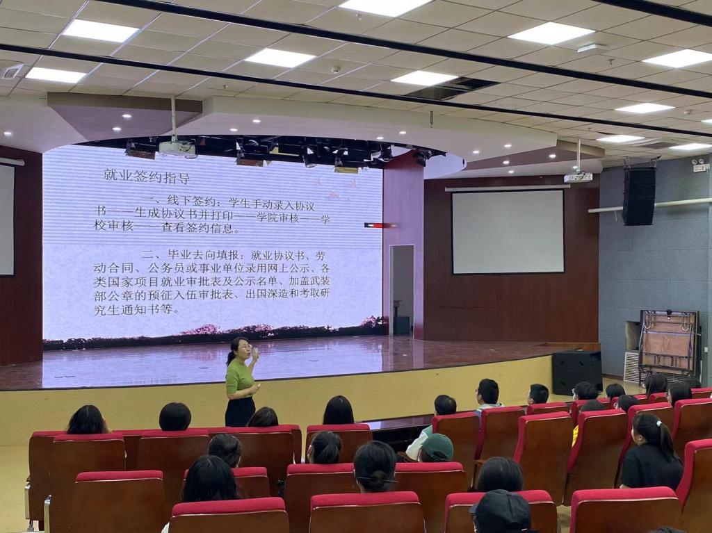 为进一步做好2023届毕业生就业指导工作,教育和引导毕业生正确认识当前的就业形势,努力提高毕业生就业能力和就业质量,6月2日上午,文学院团学办公室副主任吴岩在崇文楼B座七楼小剧场为2023届毕业生举办就业指导讲座。