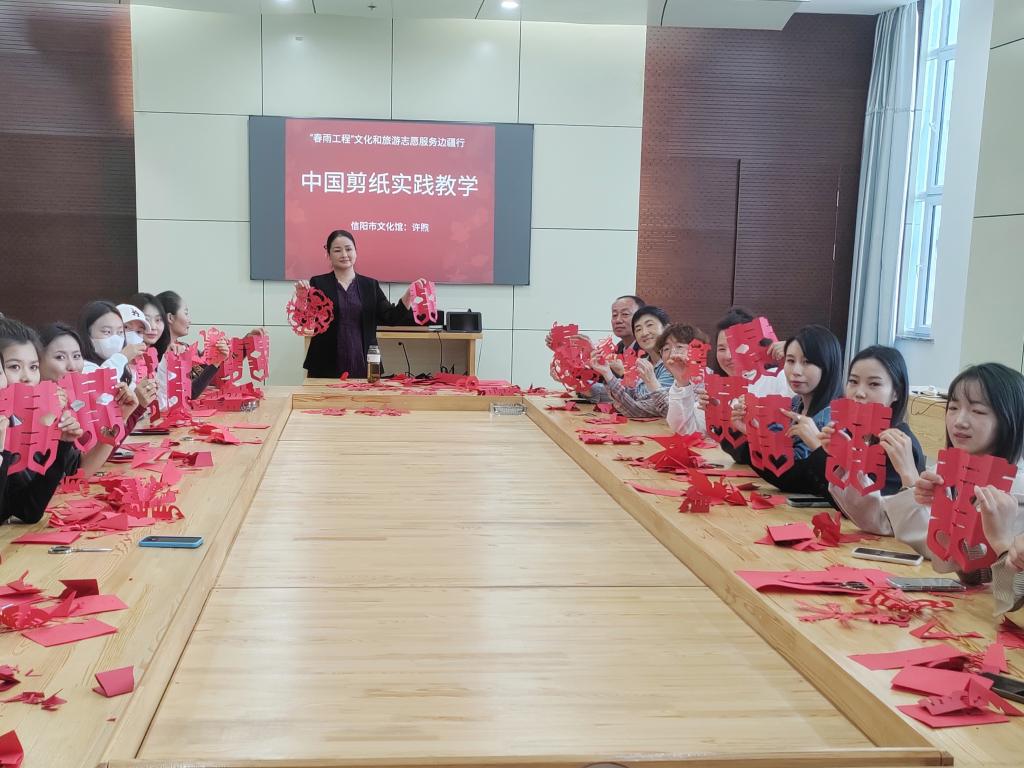 本次剪纸非遗文化活动由信阳市文化馆国家一级美术师许熙为大家现场授课。许熙老师将爱党、爱国的情怀融入自己精心创作的剪纸作品中。活动过程中,大家近距离地接触了剪纸传统文化,深刻感受到了非遗文化的魅力所在。广大学生党员表示,剪纸是中国传统文化艺术,红色剪纸具有历史意义和文化意义,通过参与本次传统文化剪纸活动,不仅增强了青年大学生对民族文化的认同感与自豪感,同时增强了大家坚定社会主义核心价值观的信念。了解非遗文化,走进非遗文化,才能更好的传承中华民族传统文化。