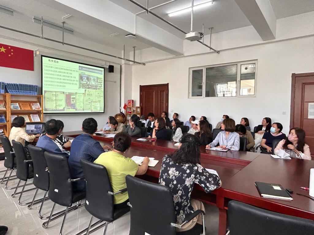 教师马艳艳以《躬耕教坛 强国有我——教研相长,教师技能大赛经验分享》为题,结合亲身经历,围绕内容、设计、效果三个关键,分享了青教赛、教创赛、思教赛等比赛经验,对比赛内容、教学设计、课件制作等内容进行了细致讲解。同时,她围绕学识、德行、态度三个基本要素,引导全体教职工要牢固树立终身学习的理念,不断提高业务能力和教育教学质量,做有理念、有学识的授予者,努力成为业务精湛、学生喜爱的高素质高校教师。