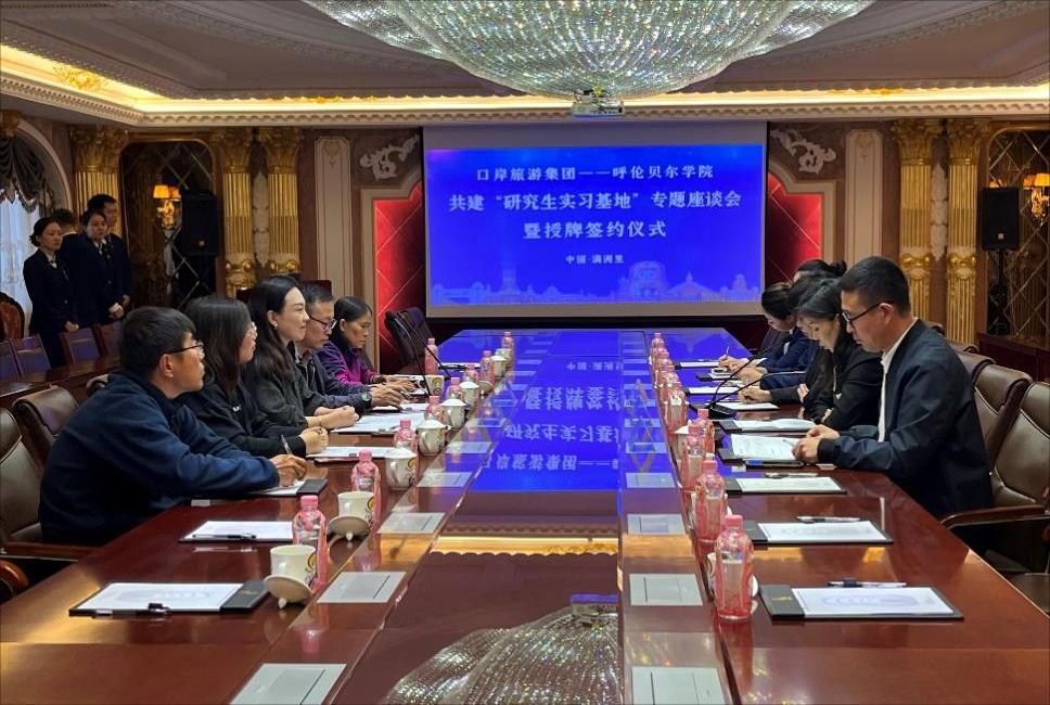 校企联谊谋发展,合作双赢谱新篇。在促进产教深度融合、提高学生综合素质的目标驱动下,9月19日下午,旅游地理与历史文化学院代表与满洲里口岸旅游集团代表在口岸集团会议室举行共建“研究生实习基地”专题座谈会暨授牌签约仪式。座谈会由口岸旅游集团人事监察部总监王志波主持。