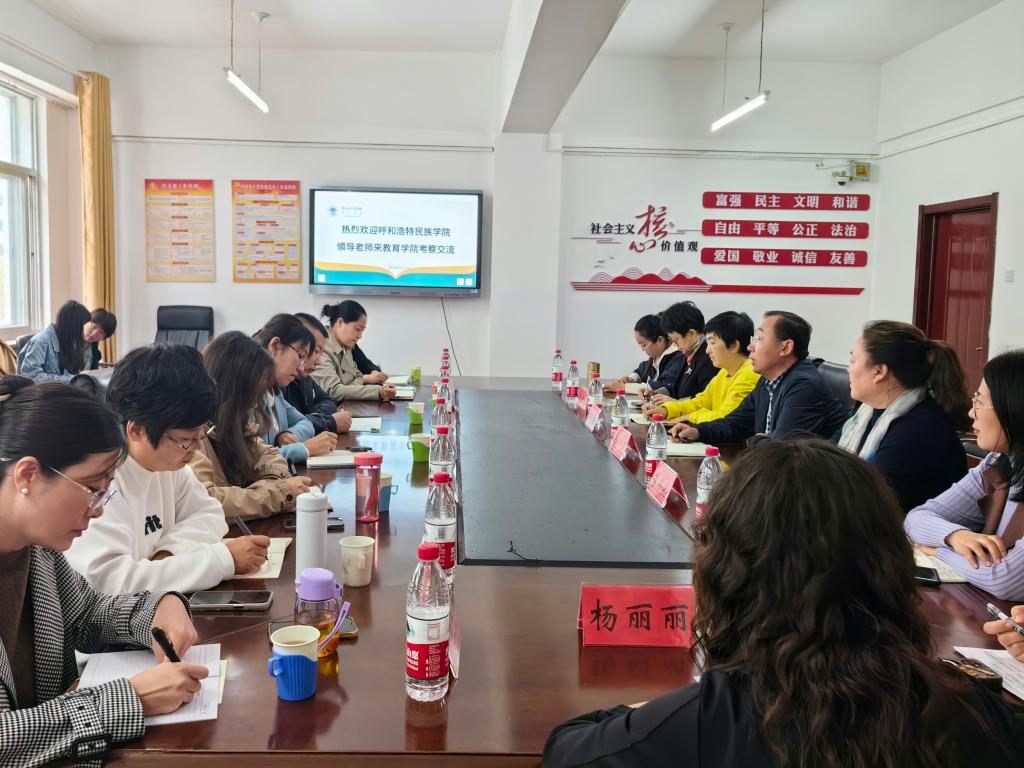 9月25日,呼和浩特民族学院学前教育学院院长其其格及其教学团队来教育学院调研考察学前教育专业认证工作,并在艺术楼210会议室进行座谈。座谈会由院长李伟艳主持。学院班子成员及学前教育专业专任教师参加座谈会。