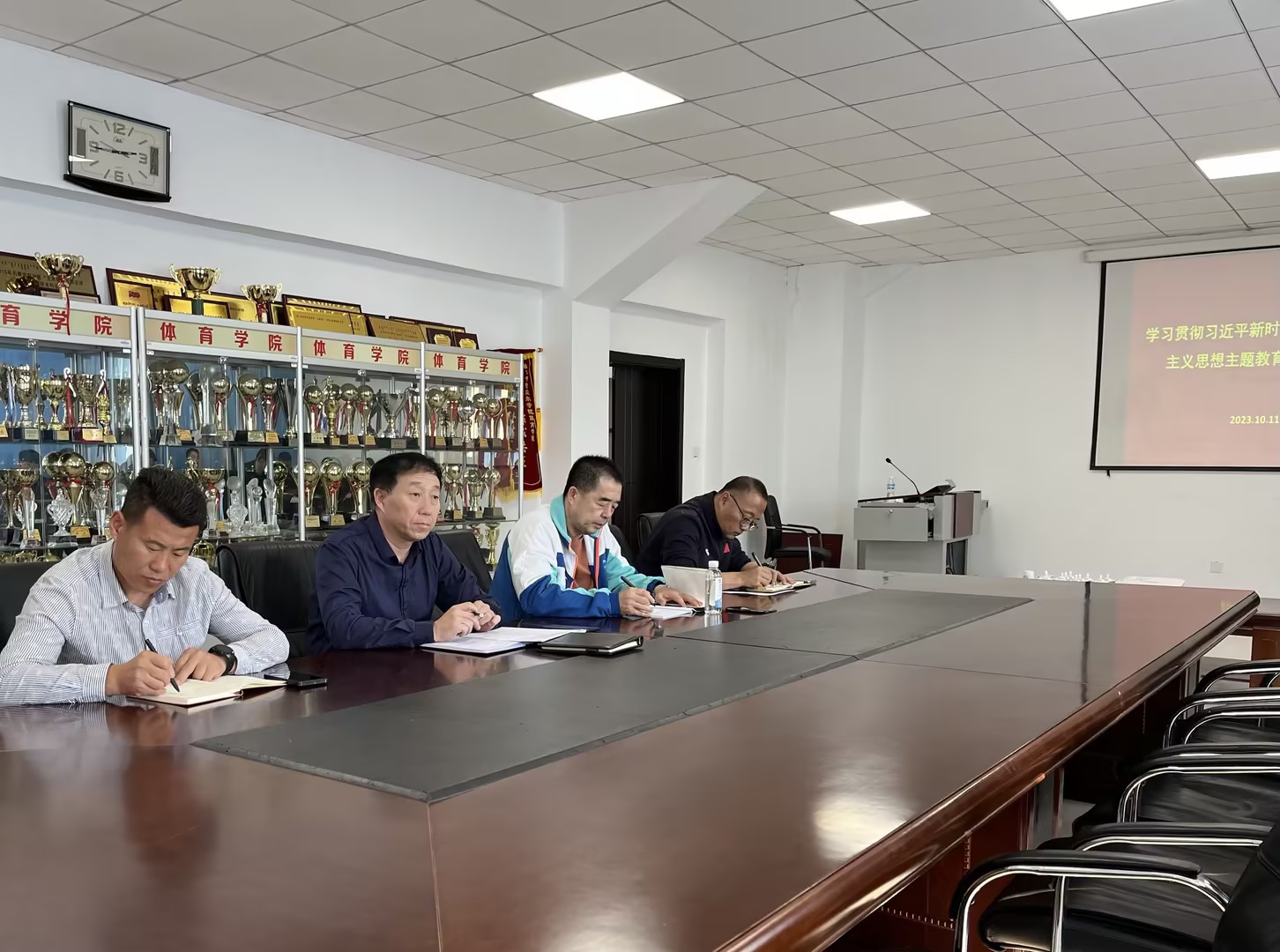 为进一步深入学习贯彻习近平新时代中国特色社会主义思想,10月11日下午,体育学院(冰雪运动学院)召开了学习贯彻习近平新时代中国特色社会主义思想主题教育部署会暨专题学习会。学院领导班子成员、全体党员教师参加会议,学院党总支书记胡日查主持会议。
