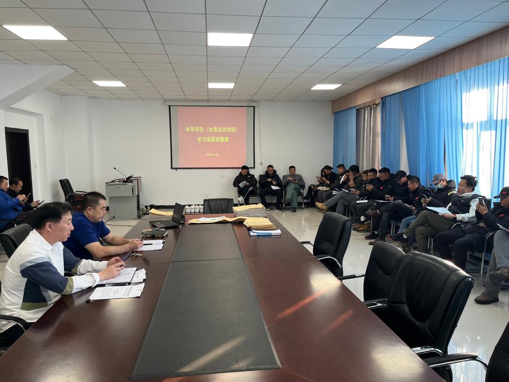 为深入学习贯彻党的二十大精神,推动主题教育走深走实,充分发挥“学习强国”学习平台的重要作用,11月8日下午,体育学院(冰雪运动学院)在东山体育场二楼会议室举办“学习强国”答题挑战赛,学院全体教师共同参加。