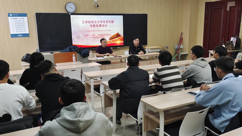 主题教育|工学院党总支书记王旭为学生党员讲授专题党课