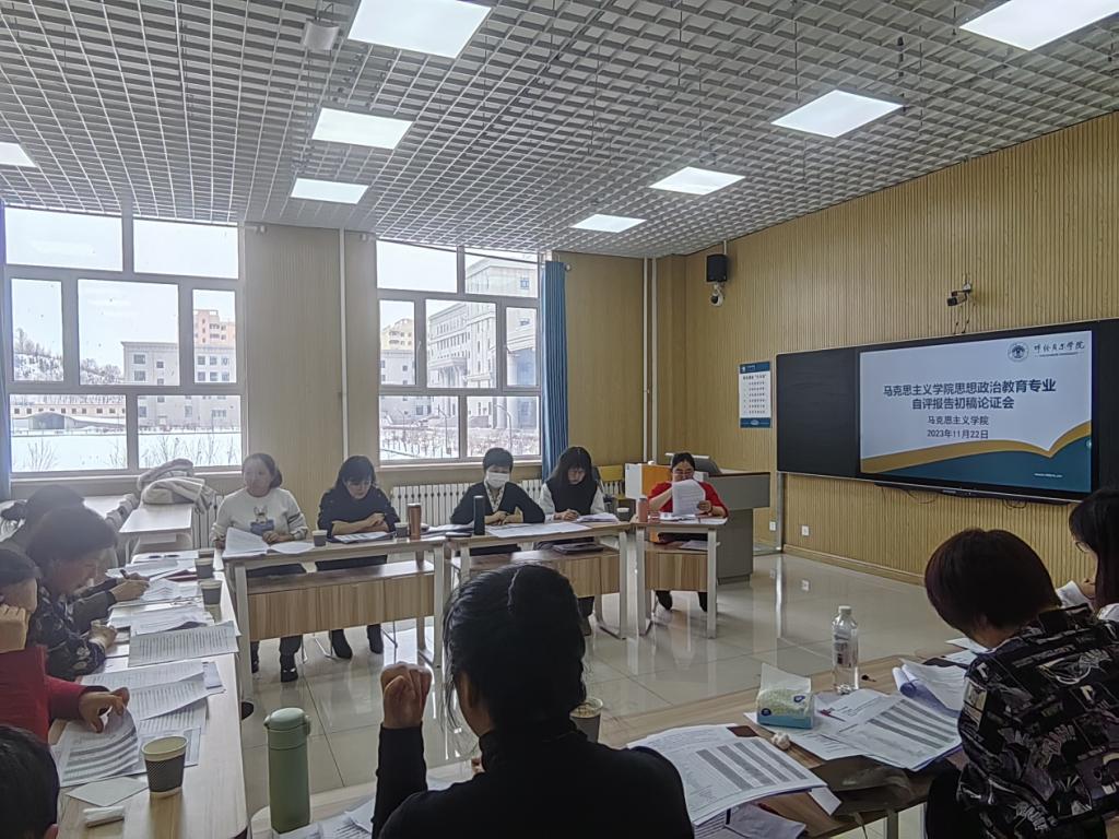 为扎实推进师范类专业认证工作,11月22日,马克思主义学院在崇文楼B125教室举行自评报告初稿论证会。学院领导班子、系主任和全体师范专业认证组成员参加了会议。会议由学院副院长明兰主持。