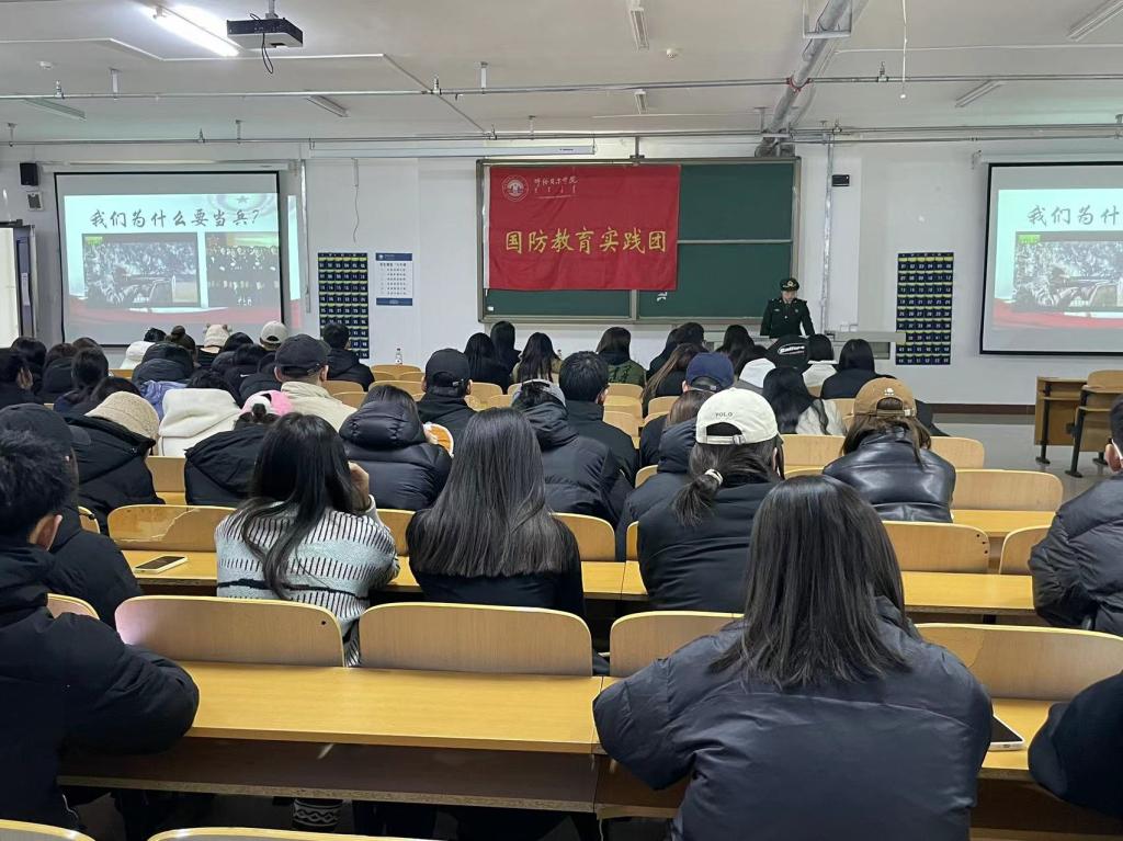讲座上,国防教育实践团宣讲队员以《参军报国——奋进新时代,启航新征程》为题,介绍了2023年征兵政策的变化,重点就报名及体检时间、入伍条件、优惠政策等作了详细解读,还与现场学生深入交流,回答了大家提出的入伍去向、个人发展以及退役安置等问题,鼓励大家响应党和国家号召,踊跃报名参军,携笔从戎,把远大的爱国之志变成笃实的爱国之行。随后,文学院2021级秘书学专业学生王子阳与大家分享了自己的两年服兵役经历。