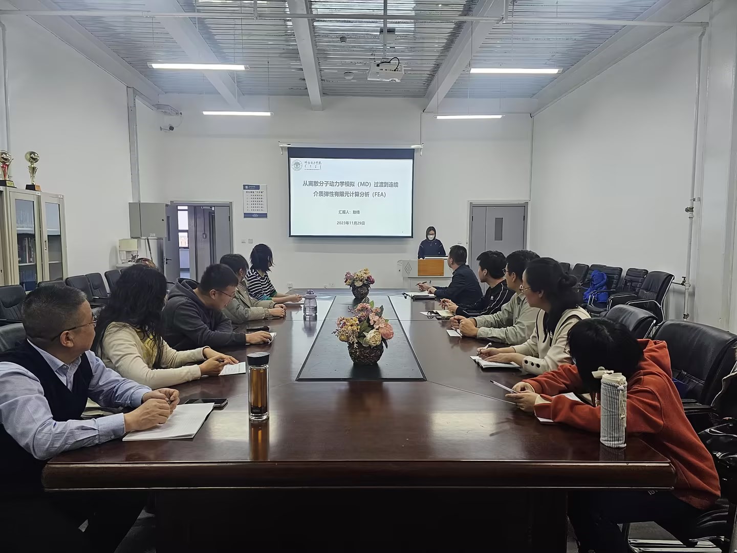 在活动中,吴淘锁围绕学院近期申报国家级“专精特新”产业学院和校级一流专业工作重心,鼓励广大教师凝心聚力,根据学院发展所需,铆足干劲做好自己的教学科研工作。随后,敖楠、雷晓菲两位教师分别作了题为《从离散分子动力学模拟(MD)过渡到连续介质弹性有限元计算分析(FEA)》和《呼伦贝尔市社科基金项目申请方法》的课题汇报,各参会教师分别就汇报内容提出了自己的见解和改进建议。