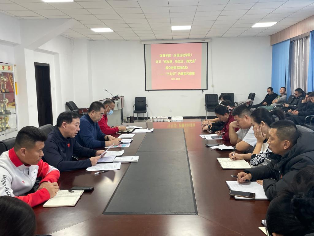 为深刻领会习近平总书记对内蒙古的重要指示精神,引导广大教职工感恩奋进、担当作为,12月6日下午,体育学院(冰雪运动学院)开展全体教师“感党恩、听党话、跟党走”——深刻理解“五句话”集中学习会。学院领导班子成员及全体教师参加会议。
