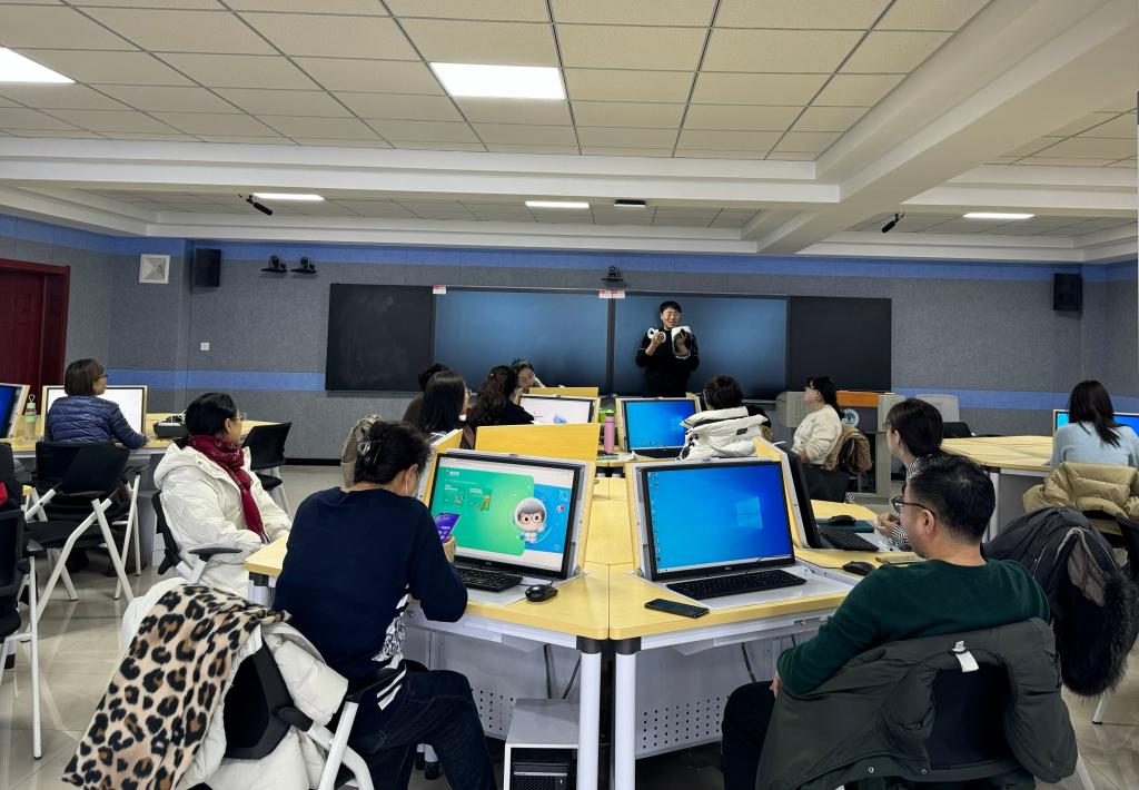 徐天培首先对虚拟仿真实训室的硬件和软件进行了整体介绍,虚拟仿真实训室现有教师机1台、学生机45台、VR设备8台以及虚拟仿真幼儿园实训系统、幼儿园教师资格证考试模拟系统、幼儿园环境创设虚拟仿真实训系统、早期教育虚拟仿真系统4个实训系统。随后,他利用教师机、学生机和VR设备进行了4个实训系统的使用培训和讲解,参训教师认真学习,了解了课程教学内容与虚拟仿真教学的联系,并对今后虚拟仿真实训室的拓展使用进行了热烈讨论。
