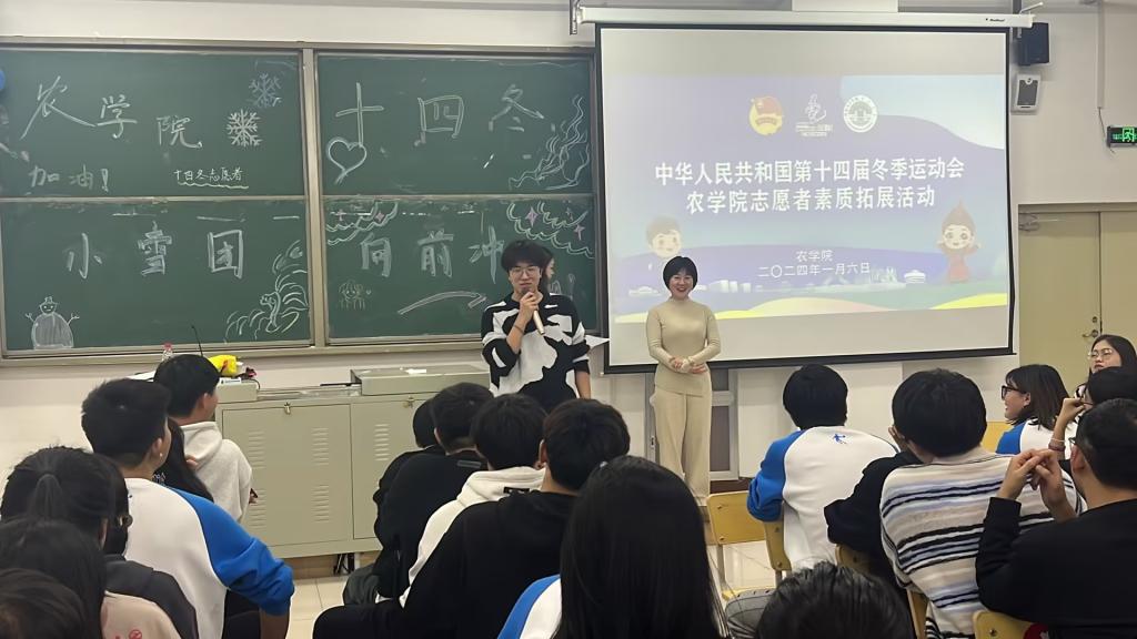 1月6日,农学院组织“十四冬”志愿者在崇文楼B201会议室开展了“相约十四冬”志愿者素质拓展活动。学院党总支书记郭晶、学工队伍教师以及学院全体志愿者和演员参加活动。