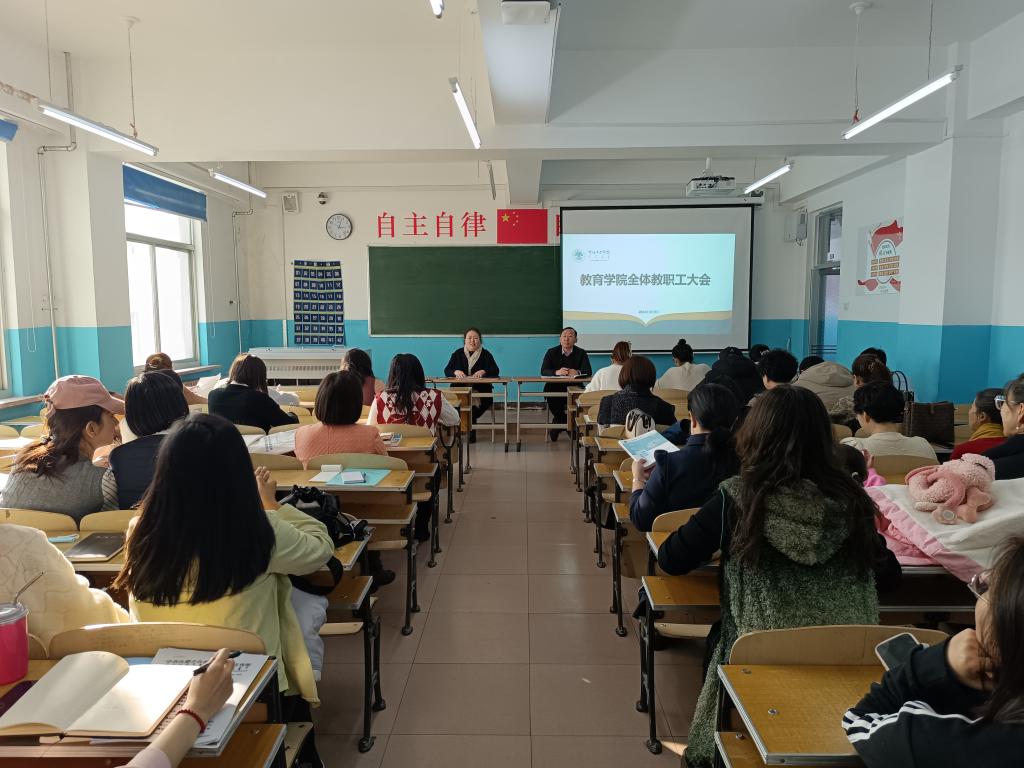 为提升新学期教职工士气,推进学院安全教育建设,3月3日下午,教育学院在艺术楼405会议室召开新学期全体教职工大会暨开学第一课教育活动,学院全体教职工参会,会议由学院院长李伟艳主持。