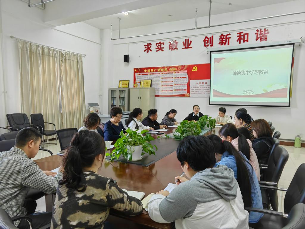院长白秀峰组织全体教师认真学习了习近平总书记关于“四有”好老师、“四个引路人”“四个相统一”“经师”和“人师”统一的“大先生”等重要指示要求和教育部《新时代高校教师职业行为十项准则》《内蒙古自治区高等学校教师师德失范行为负面清单》等内容,并开展了热烈讨论。