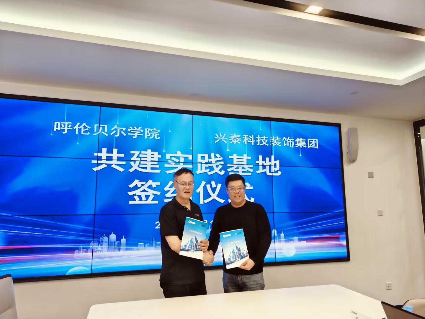 为提高人才培养质量,搭建学生专业实习和就业工作高质量合作平台,3月18日,建筑工程学院党总支书记官志文、副书记哈达、教师李阳一行代表学校与内蒙古自治区兴泰建设集团有限公司和兴泰科技装饰集团有限公司举行共建实践基地签约仪式。仪式由兴泰建设集团有限公司职业培训学校校长张全卫主持,兴泰置业集团成本控制中心主任牛海祥、兴泰建设集团内蒙古鑫泰钢结构有限责任公司总工程师郑光升、内蒙古兴泰科技装饰集团有限公司总工程师王瑞林等领导参加签约仪式。