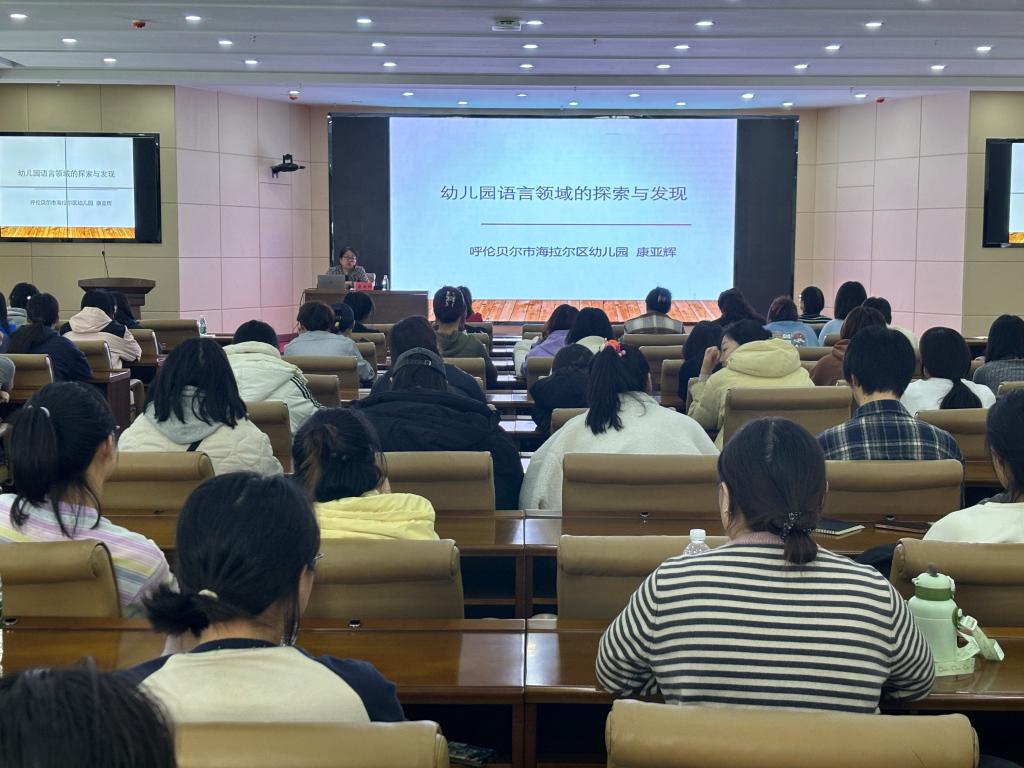 为进一步深化学前教育专业学生对幼儿教育领域的认识,提升学生们的专业能力与职业素养,3月28日上午,在崇文楼A201会议室,教育学院邀请了海拉尔区幼儿园副园长康亚辉作了题为《幼儿园语言领域的探索与发现》的讲座。学院学前教育系主任杨丽丽主持,学前教育专业任课教师及2020级学前教育专业120余名学生聆听了本次讲座。