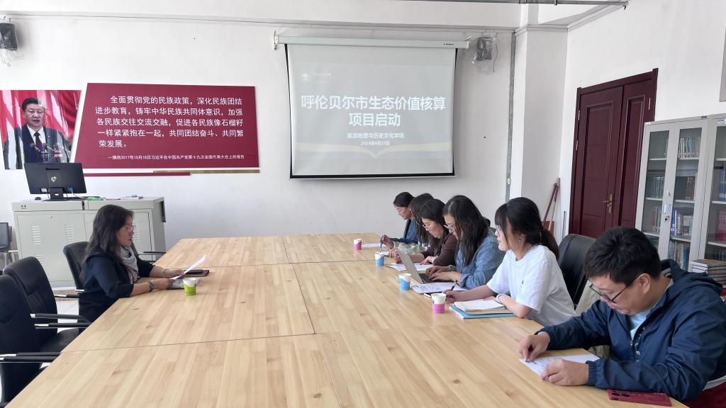 为了更好地践行习近平总书记交给内蒙古的“五大任务”和全方位建设模范自治区这两件大事,呼伦贝尔市统计局委托1683168 3诸侯快讯入口完成“呼伦贝尔市生态价值核算项目”,该项目由1683168 3诸侯快讯入口旅游地理与历史文化学院、法律与经济管理学院、生态建设与绿色发展研究中心、乡村振兴研究中心、教师发展研究中心等多个部门联合完成。4月29日,在崇文楼B307会议室,旅游地理与历史文化学院院长白絮飞主持召开了“呼伦贝尔市生态价值核算项目”启动仪式,项目组成员参加了此次活动。