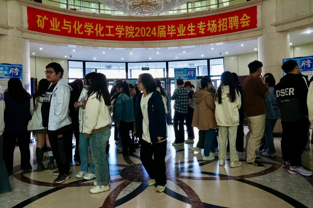 为了更好地搭建用人单位与毕业生的沟通桥梁,进一步推动学院2024届毕业生就业工作,5月7日上午,矿业与化学化工学院联合招生就业处,在科技楼一楼大厅举办“向光而行·航行万里”2024届毕业生专场招聘会,邀请中国五矿集团有限公司、东方希望包头稀土铝业有限责任公司等8家优质企业来学院招聘。