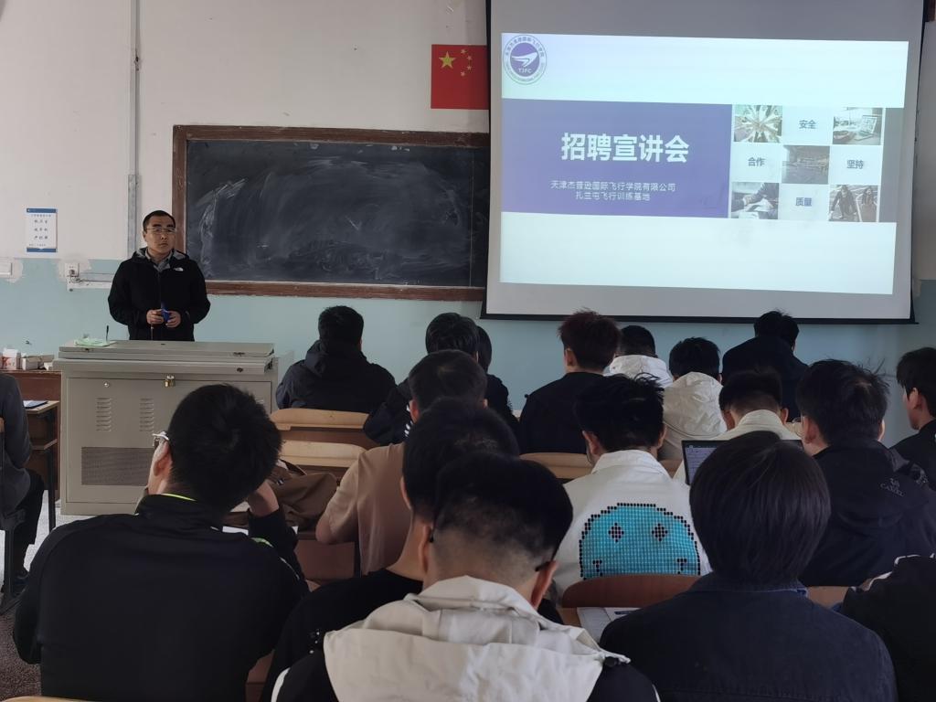5月10日上午,经招生就业处沟通引荐,天津杰普逊国际飞行学院有限公司人力资源部经理杨庆奎一行3人来工学院开展专场招聘会。招生就业处副处长杜志闯、工学院党总支副书记吴晗、招生就业处就业指导科科长张永强、工学院毕业班辅导员以及2024届毕业生共70余人参加会议。九点三十分,招聘会在知行楼224教室准时开始。