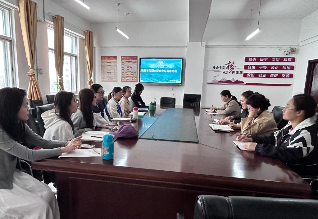 会上,同学们分享了他们在公开课、校园活动及见习期间的所见所闻、收获和所遇到的问题、困惑,并表示对学校的文化特色、教育教学工作及教师有了新的理解和认识。随后,敖敦对此次的实践学习活动进行了总结,对同学们的疑问和困惑进行了积极回应,希望同学们将理论与实践更好地融合在一起,通过亲身体验,丰富和深化理论知识。李伟艳对同学们在见习期间的表现和取得的进步给予了高度肯定和称赞,并希望同学们继续积极参加实践基地所举办的各类活动,广泛学习书本以外的知识,不断提升实践能力,促进自身的进步。