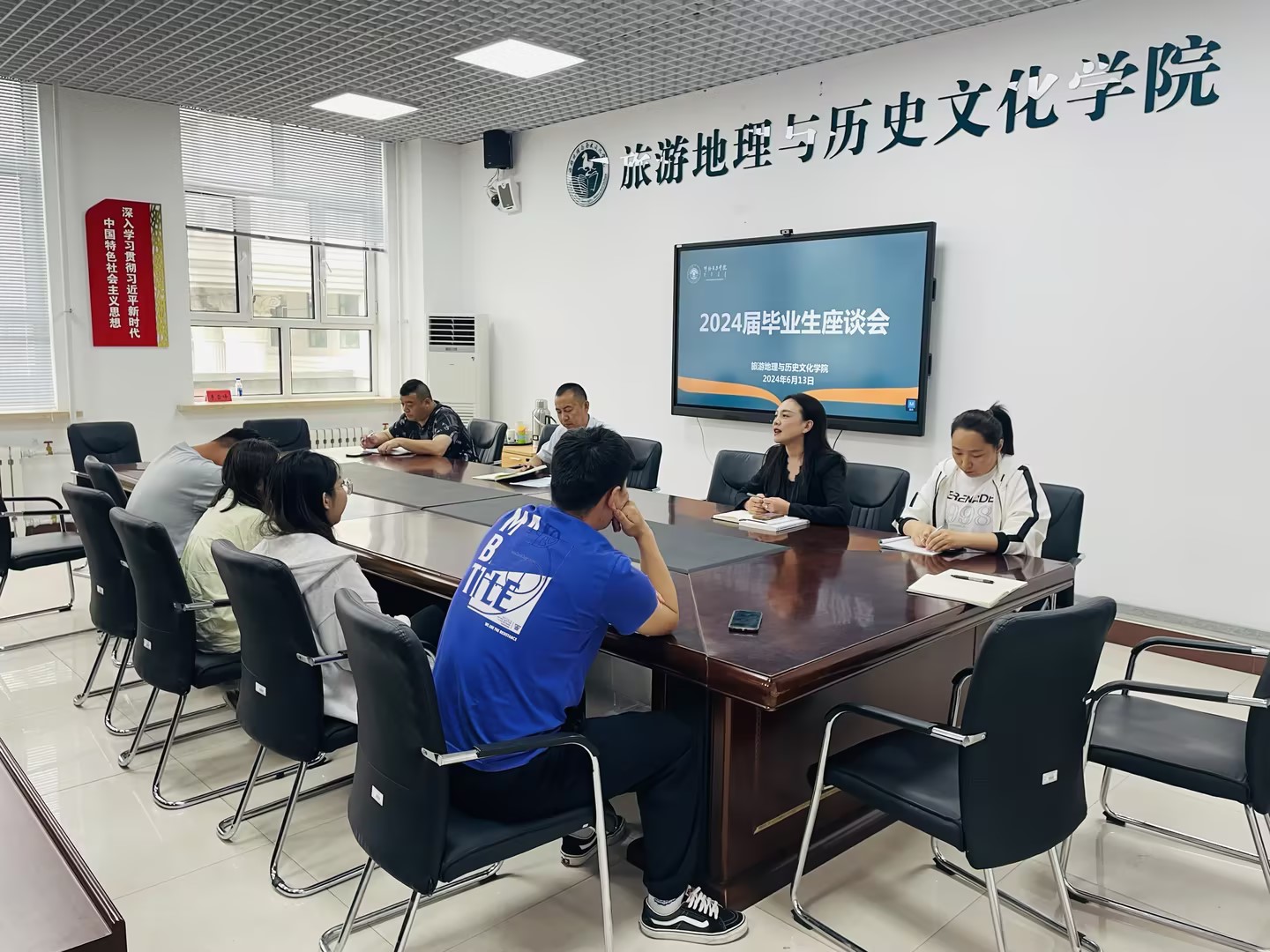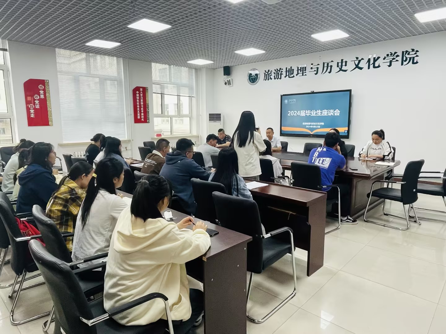 6月13日下午,旅游地理与历史文化学院在崇文楼B座321会议室举行2024届毕业生座谈会。学院党总支书记赵金辉、团学办、教研办、辅导员以及2024届旅游管理、历史学、人文地理与城乡规划、酒店管理等四个专业学生代表22人参加了座谈会。会议由学院副院长徐舒静主持。