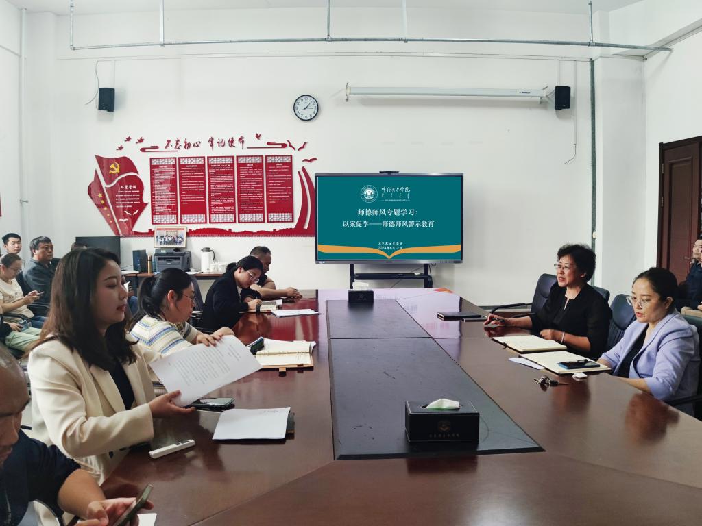 为进一步加强师德师风建设,6月12日下午,马克思主义学院在崇文楼B123会议室召开“以案促学—师德师风警示教育”暨师德师风专题学习会议。学院领导班子成员及全体教职工参加了会议。