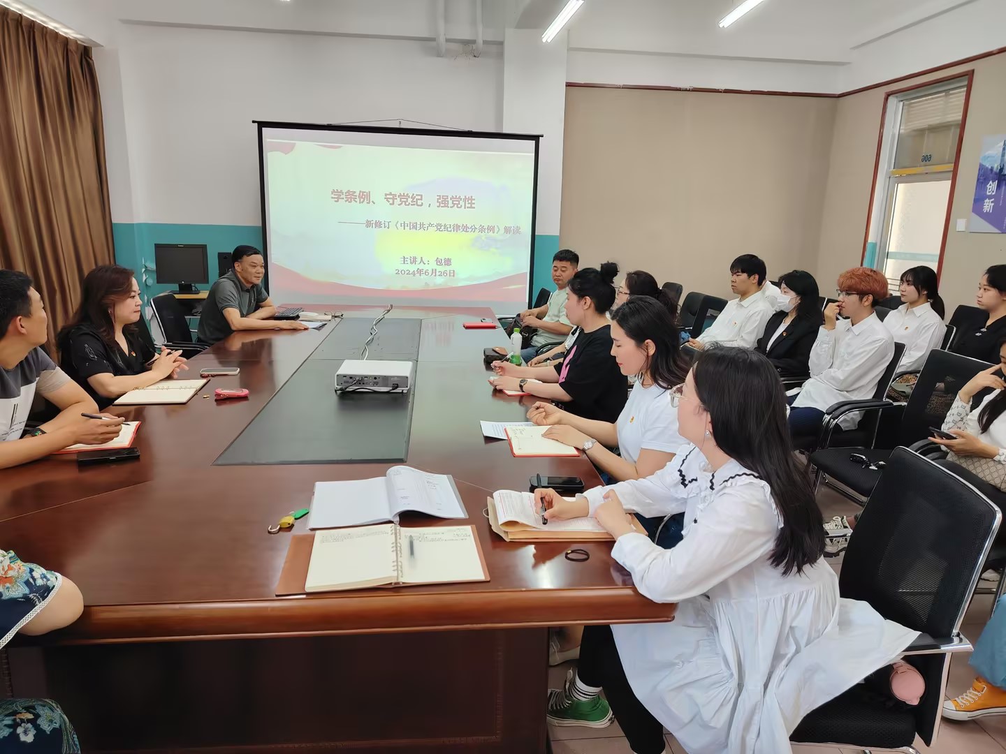 6月26日下午,音乐与舞蹈学院党总支书记包德在艺术楼606会议室,为师生党员讲授党纪学习教育专题党课。